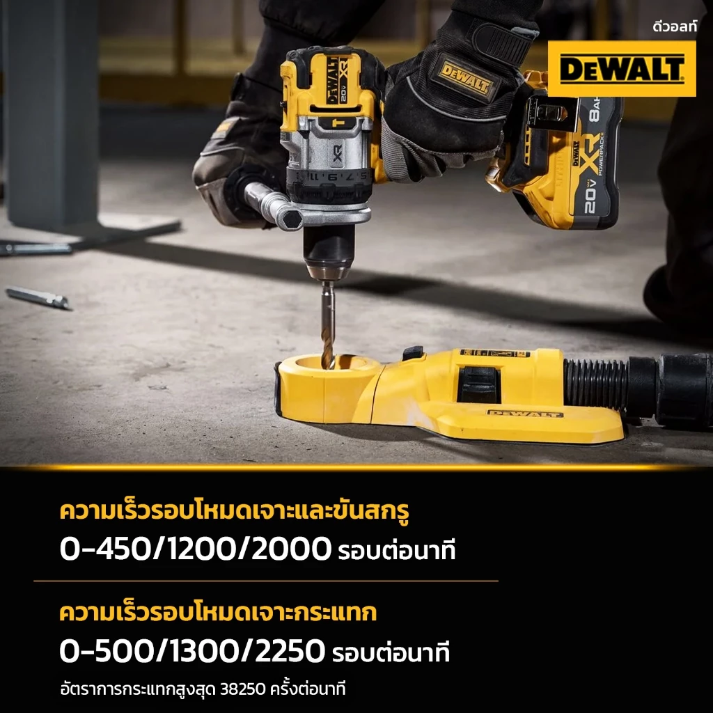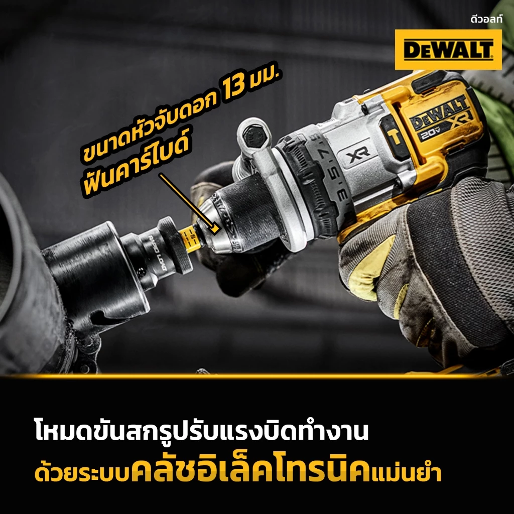 DEWALT รุ่น DCD1007N-B1 สว่านกระแทกไร้สายไร้แปรงถ่าน 20V Max รุ่นพรีเมียม 3 สปีด (เฉพาะตัวเครื่อง)